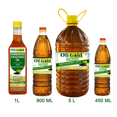 Oligold, based in Gurugram, Haryana, is one of India's trusted cold pressed edible oil brands. We offer pure mustard oil made from high-quality mustard seeds using the traditional cold pressed technique. The oil is extracted without heat or chemicals, preserving its natural flavor, aroma, and nutrition.